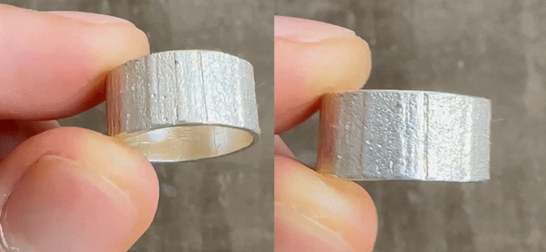 El anillo ancho textura Pino esta realizado a mano en plata 925 a partir de la textura de la madera de pino.