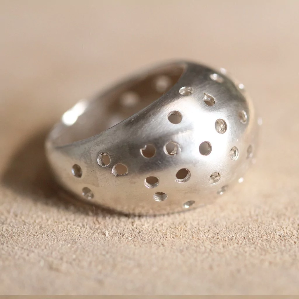 'El anillo Bombe agujeritos esta realizado a mano en plata 925.