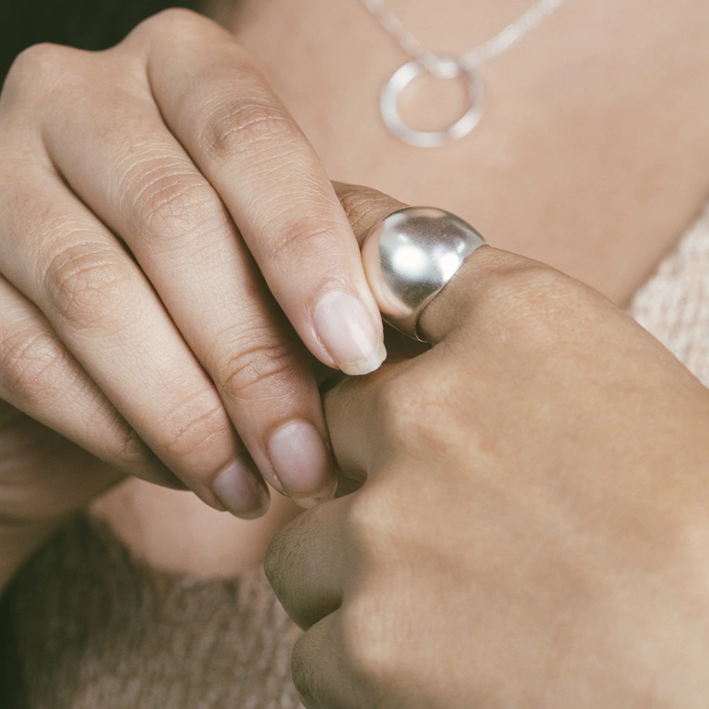 El anillo Botero esta realizado a mano en plata 925, tiene formas organicas, es delicado, clasico y a la vez moderno.
