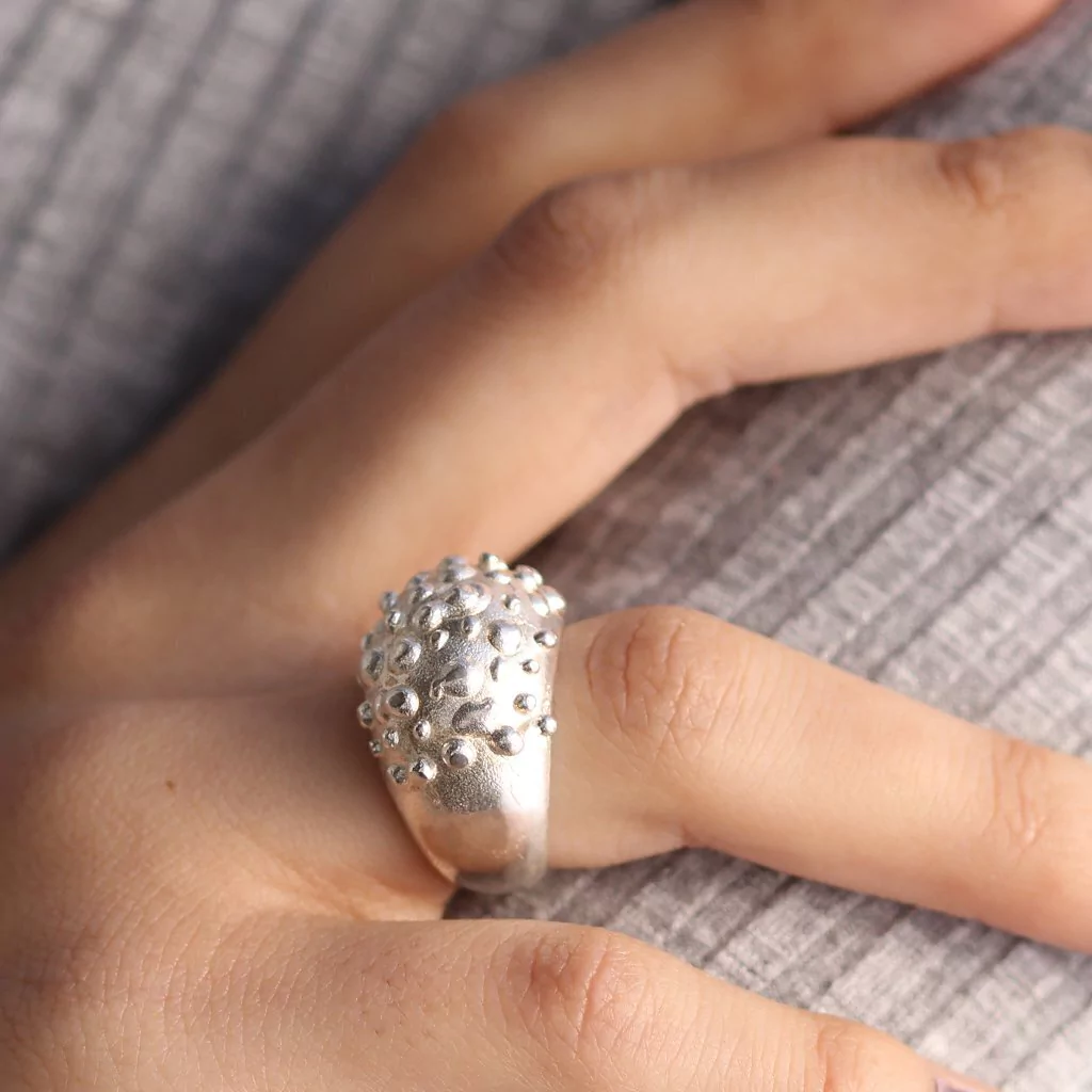 EL anillo Bombe Gotitas esta realizado a mano en plata 925.