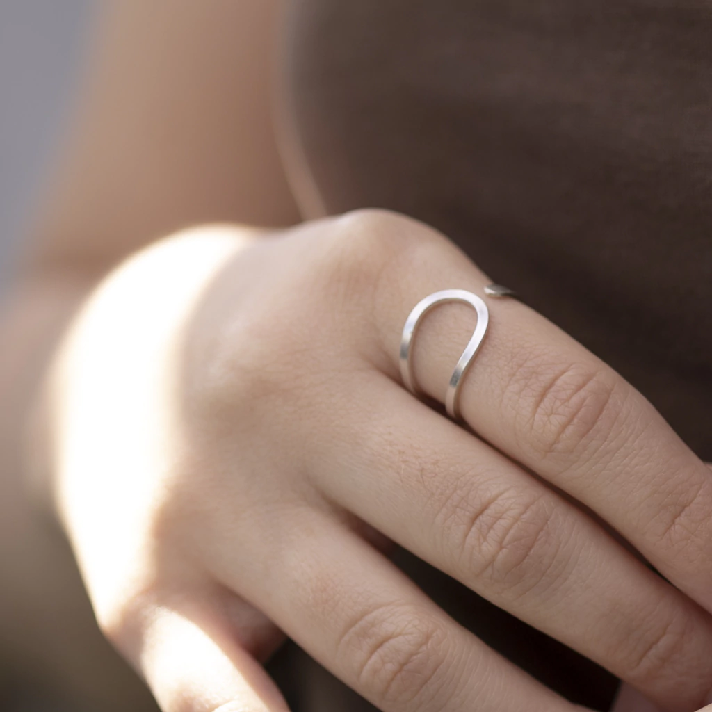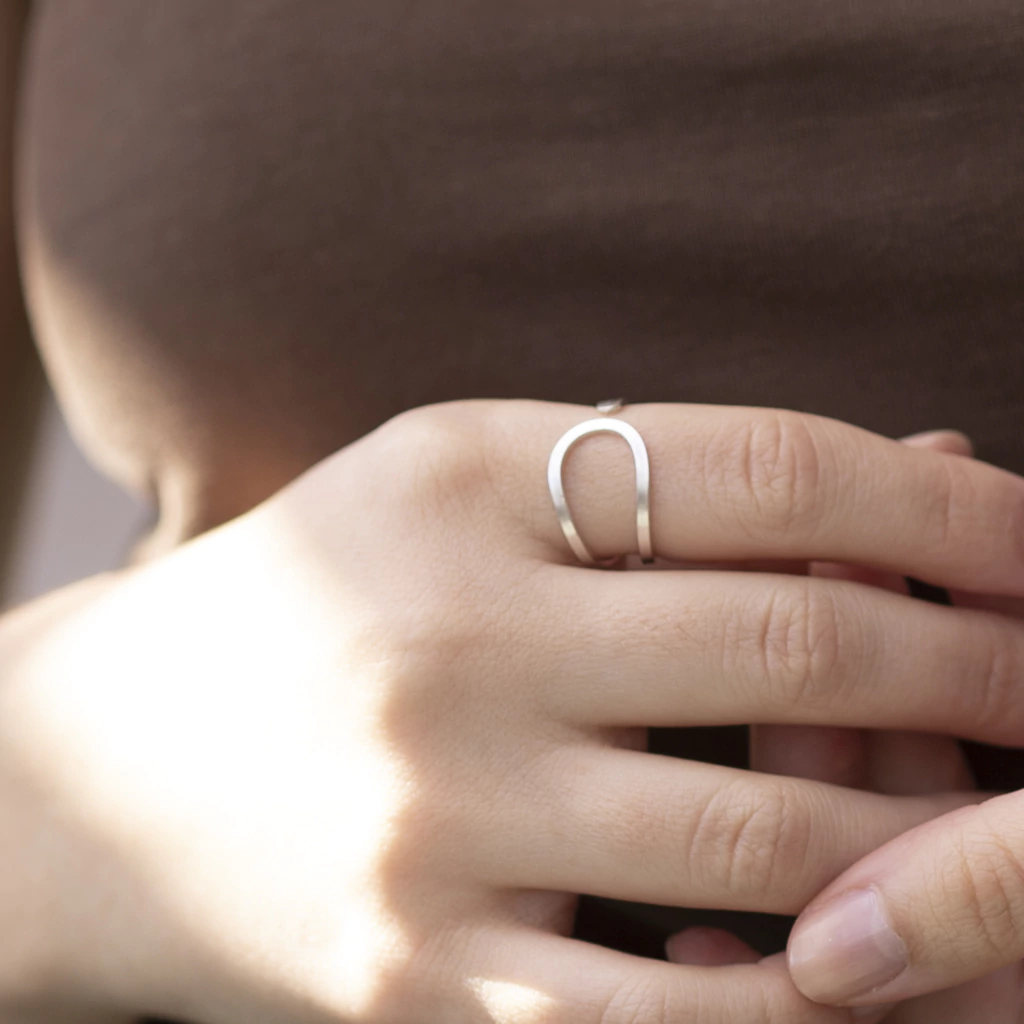 El anillo Curvo esta realizado a mano en plata 925. es un anillo de lineas curvas es simple, original y moderno.