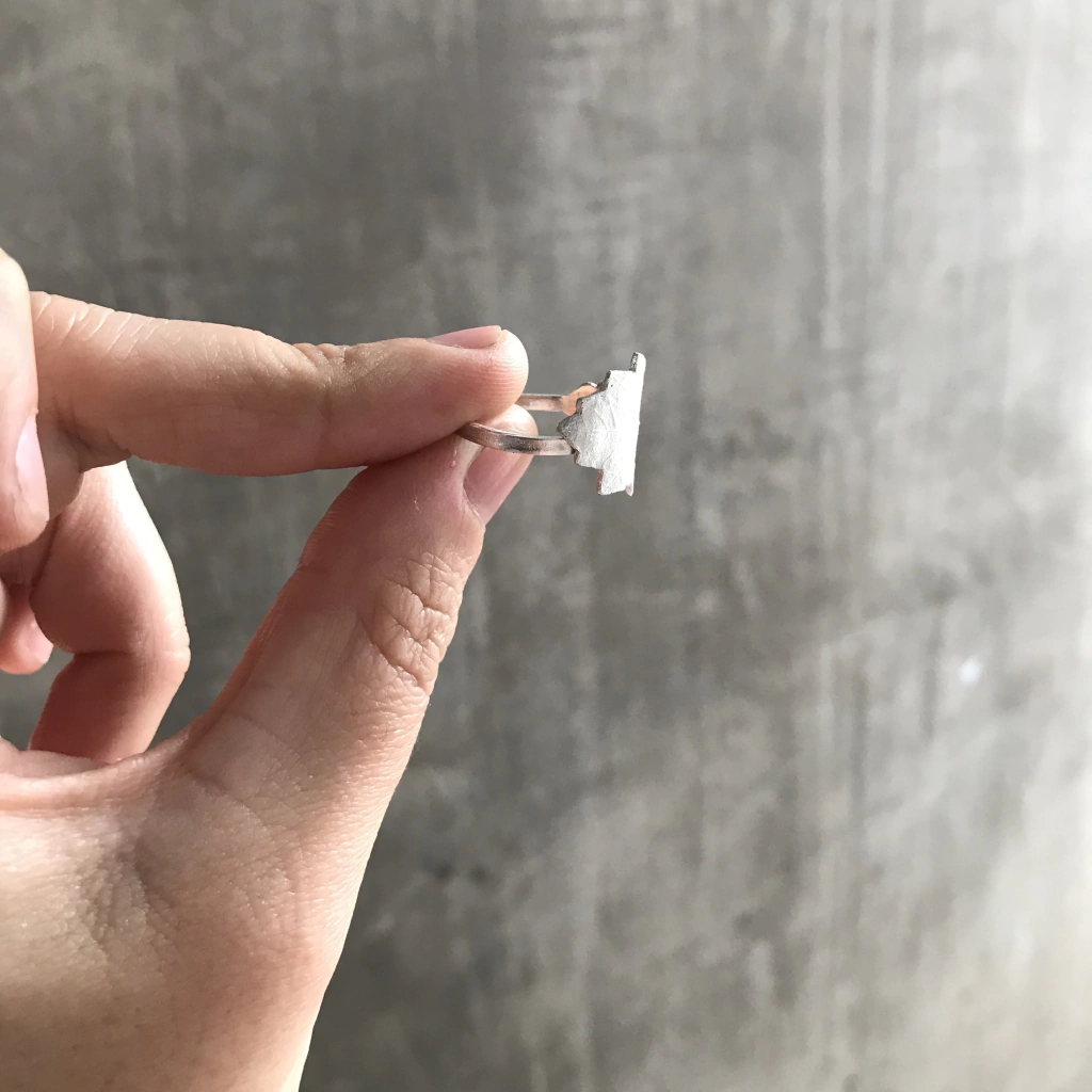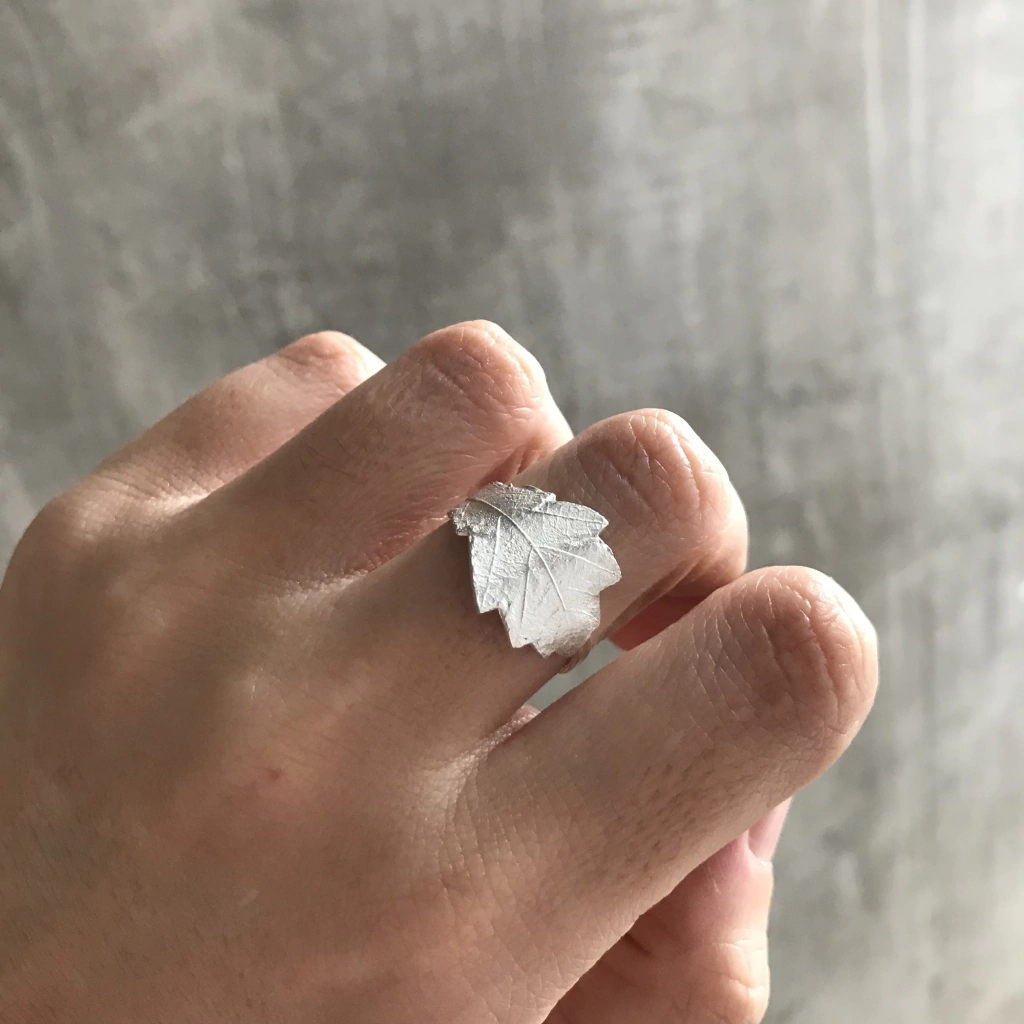 El anillo hoja de roble esta realizado a mano en plata 925, esta hecho tomando el molde de una hojita del arbol, respetando su forma y textura.