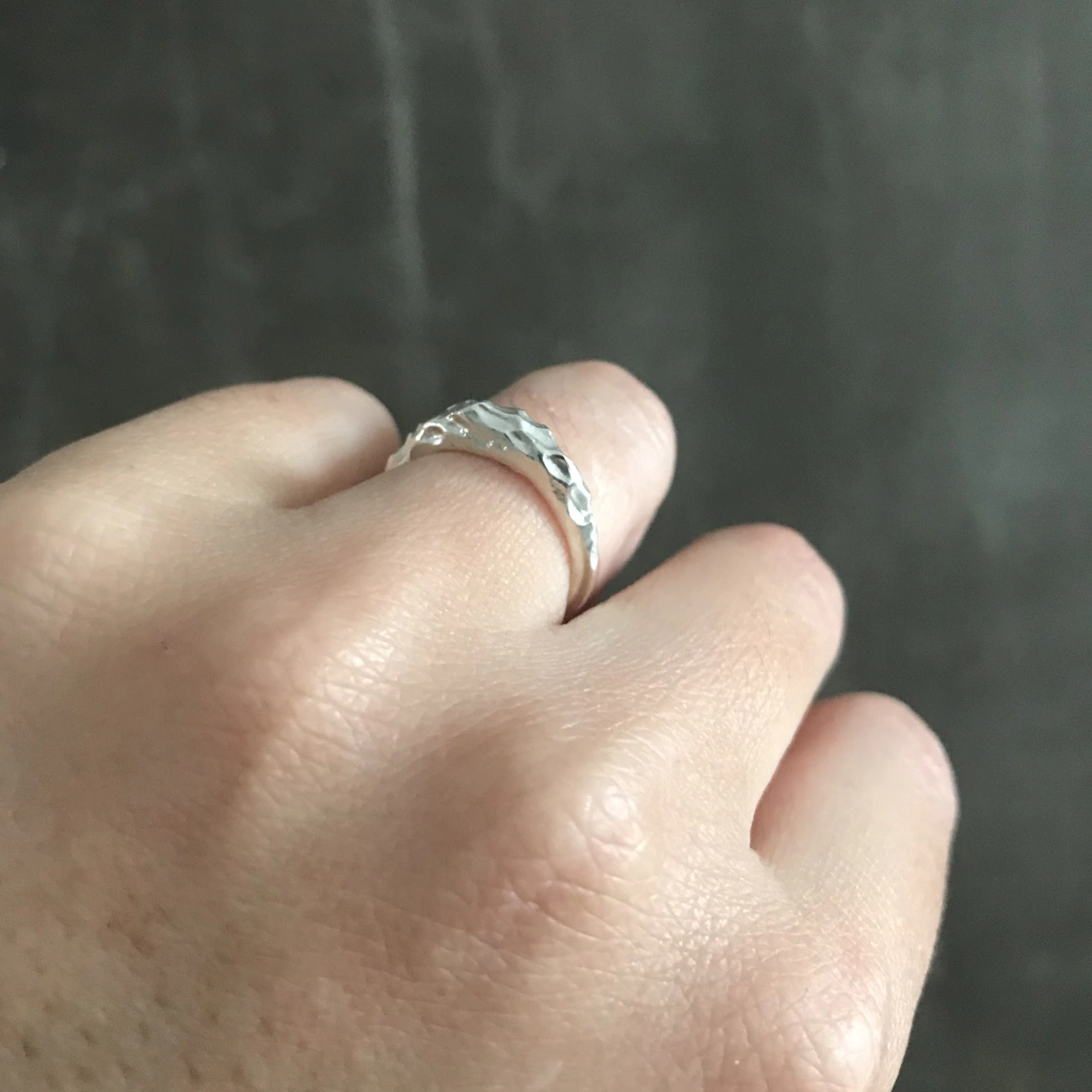 El anillo Meteorito esta realizado a mano en plata 925, es macizo y esta inspirado en la textura de un meteorito, es original y delicado.