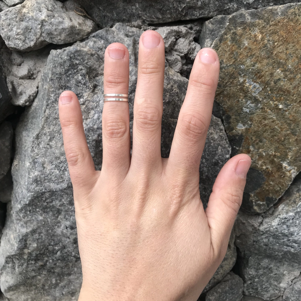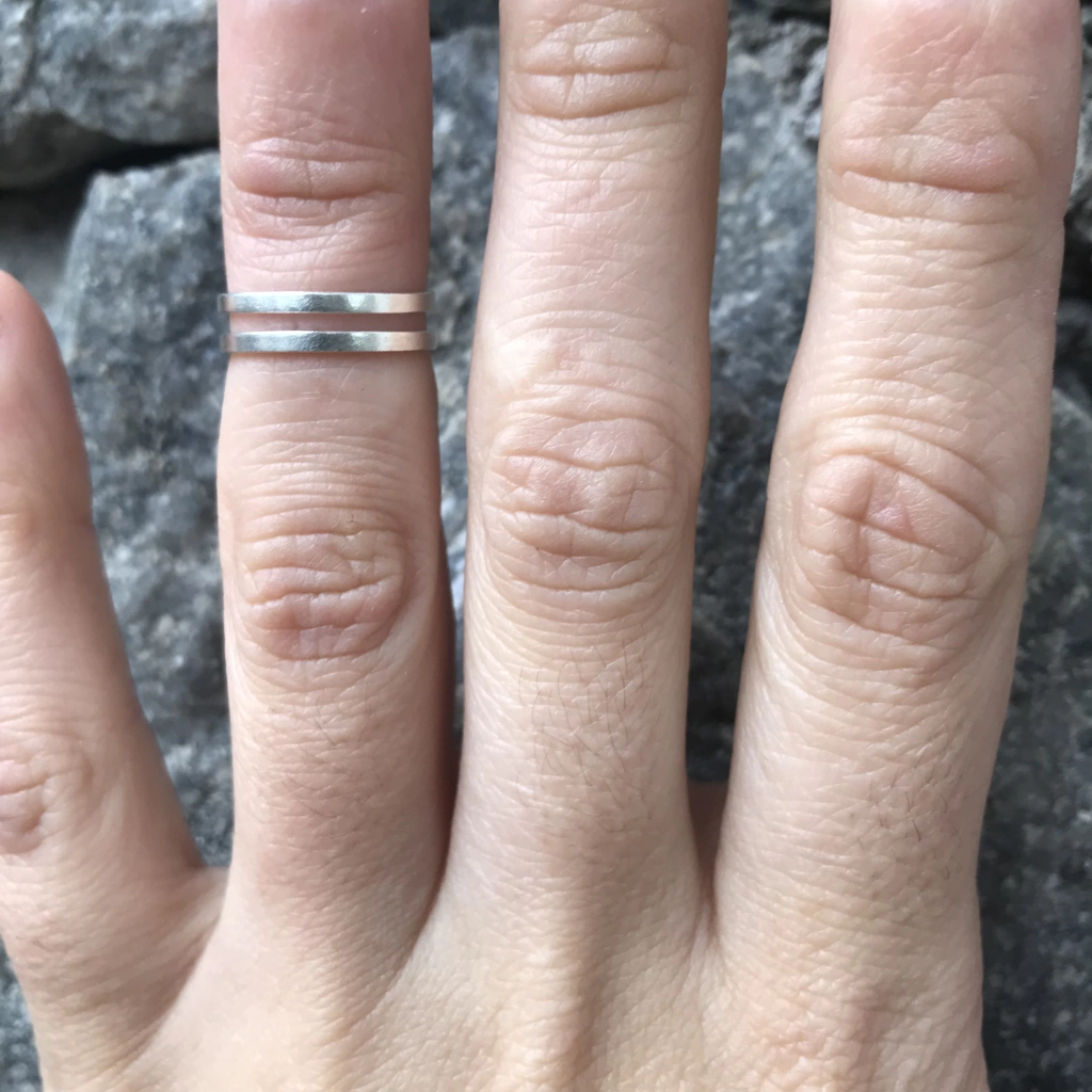 El anillo midi Doble esta realizado a mano en plata 925, lo pensamos para usar como de media falange en la mano, y tb para usar en el pie. Es ideal para acompañar otros anillos y completar un look.