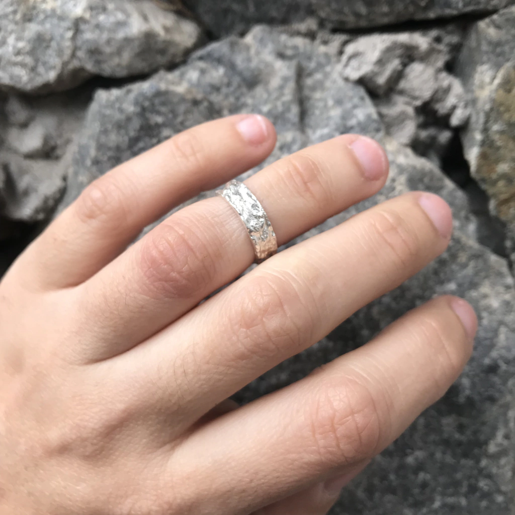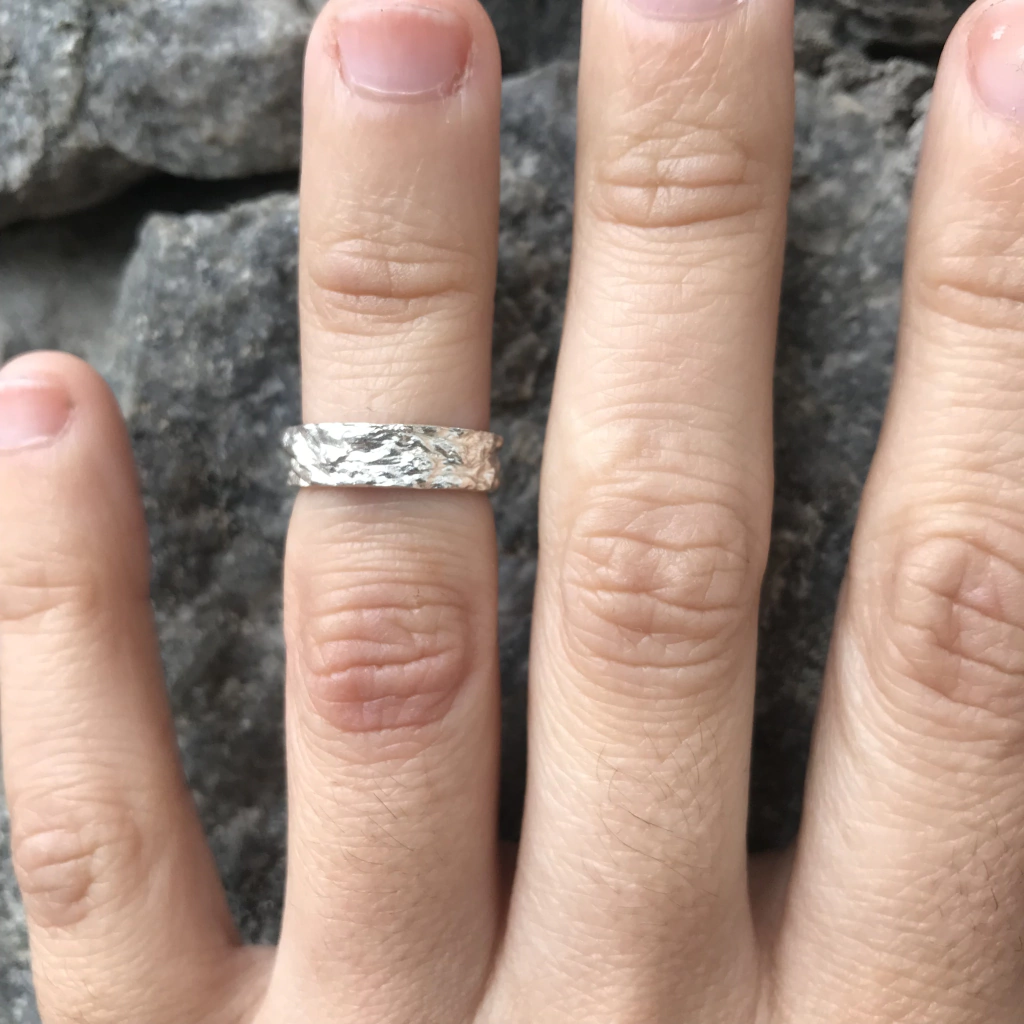 El anillo Midi Textura esta realizado a mano en plata 925, es ideal para acompañar otros anillos o puede usarse solo.