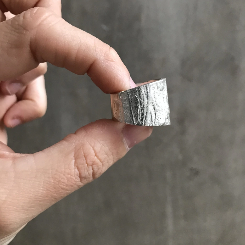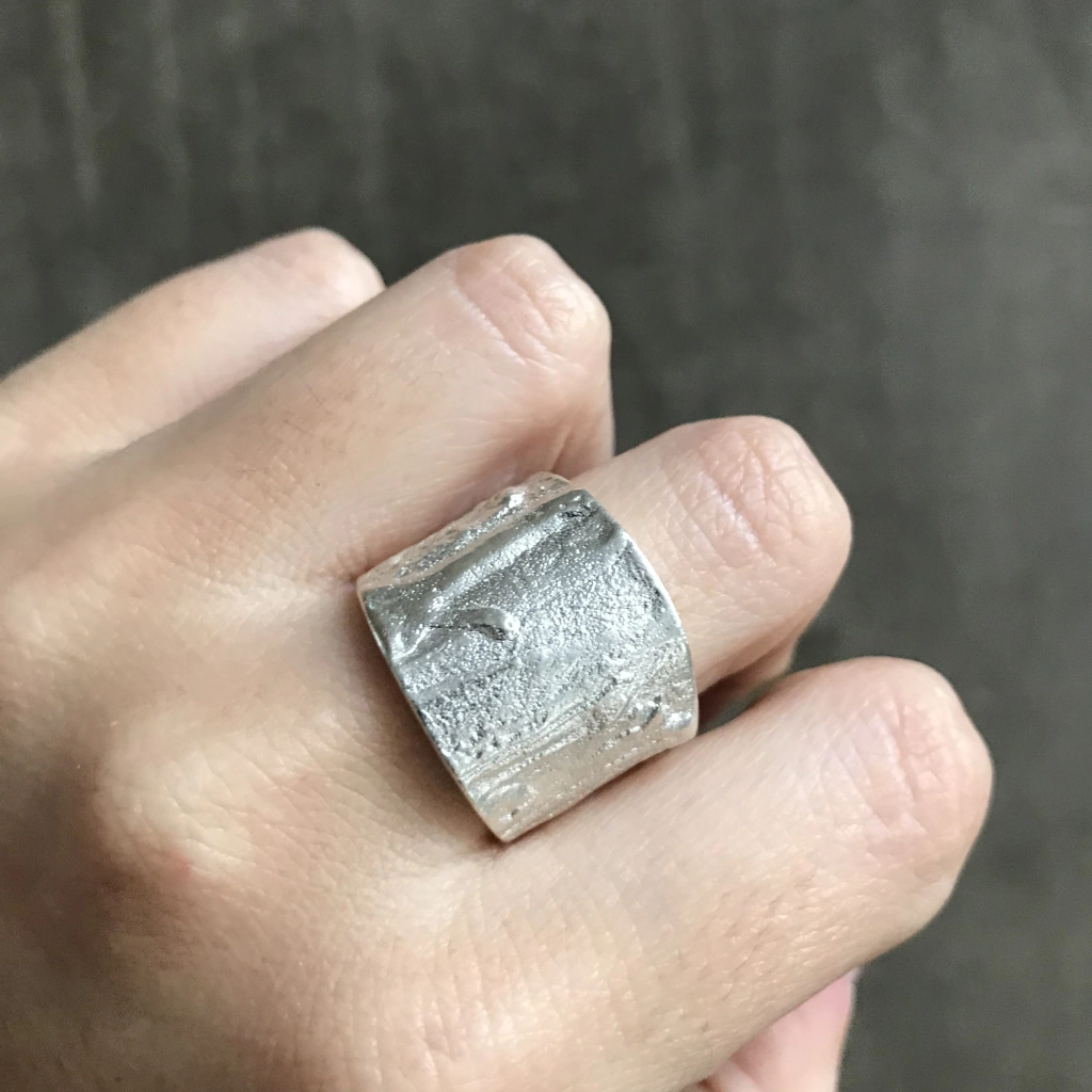 El anillo Nina textura Goteo esta realizado a mano en plata 925, es macizo, como todas nuestras piezas, es un anillo con mucha presencia, ideal para usar solo, es un anillo para toda la vida.
