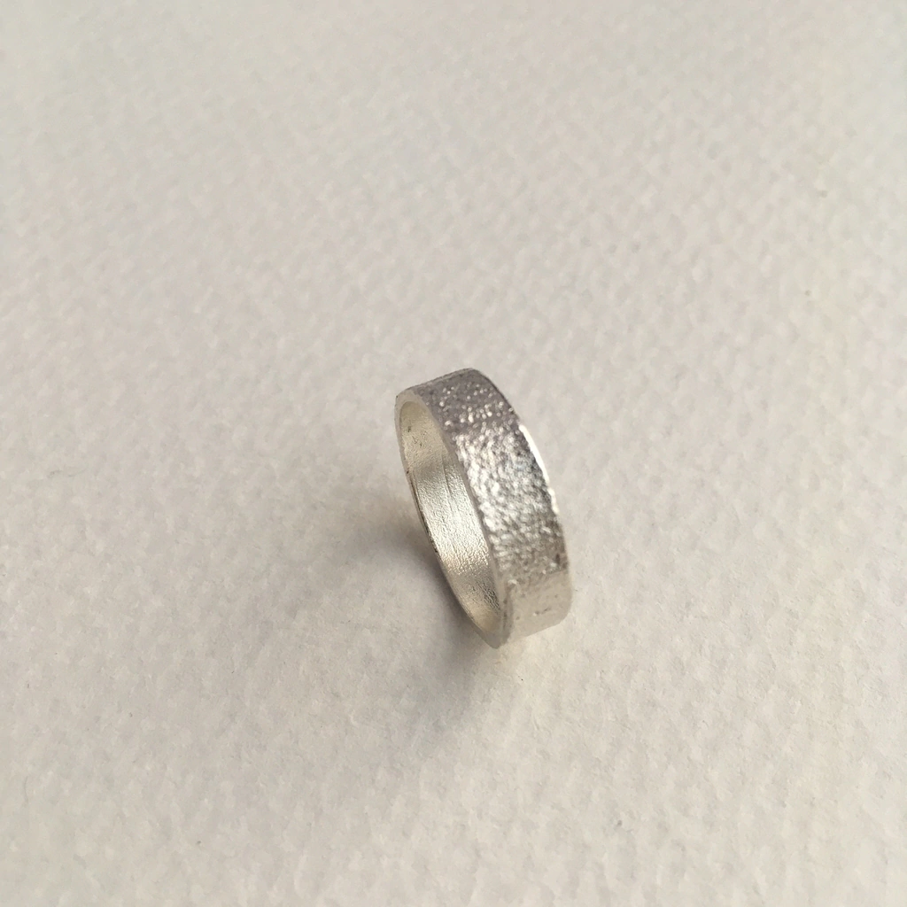 El anillo fino textura Pino esta realizado a mano en plata 925 a partir de la textura de la madera de pino.