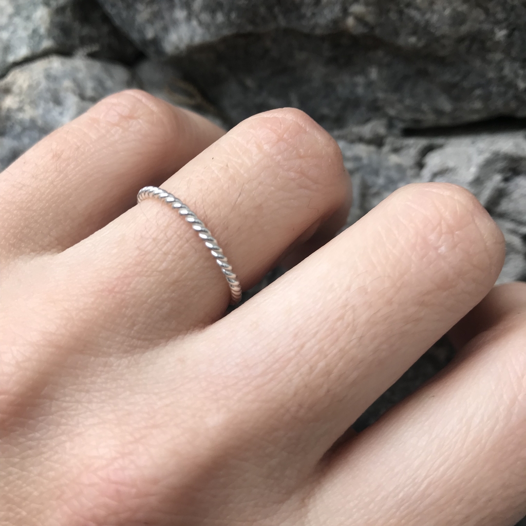 El anillo Torzado fino esta realizado a mano en plata 925, es simple y clasico.