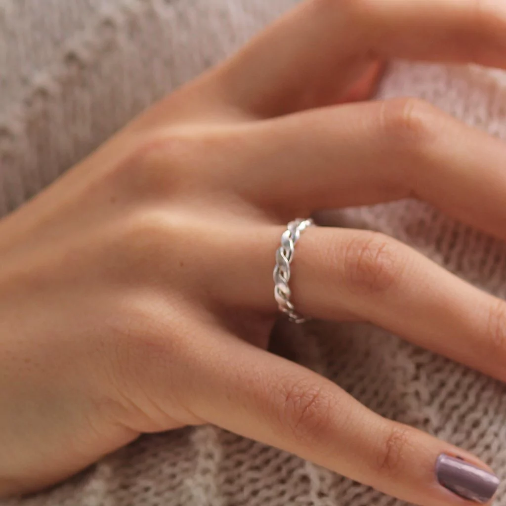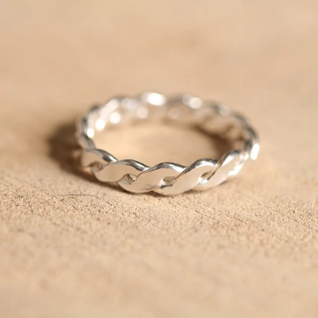 El anillo Trenza esta realizado a mano en plata 925, es un diseño simple y clasico.