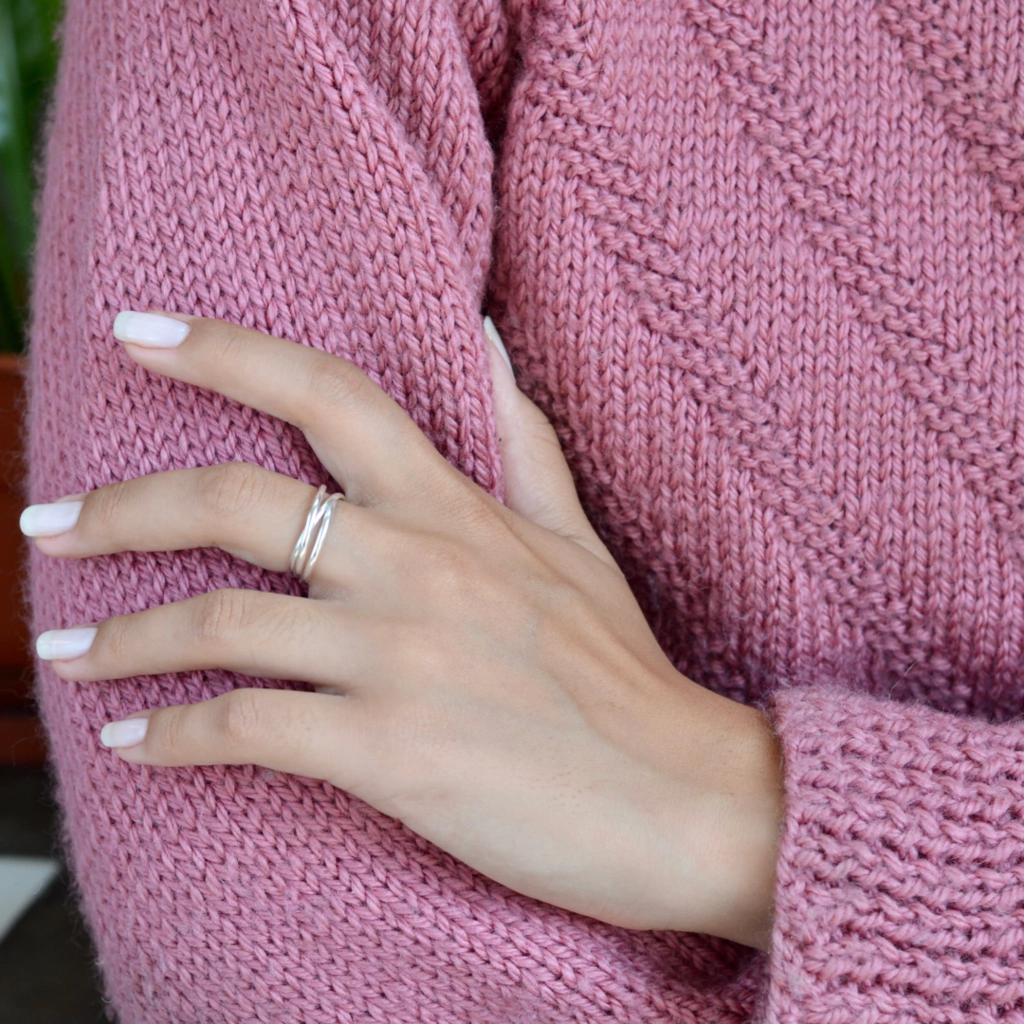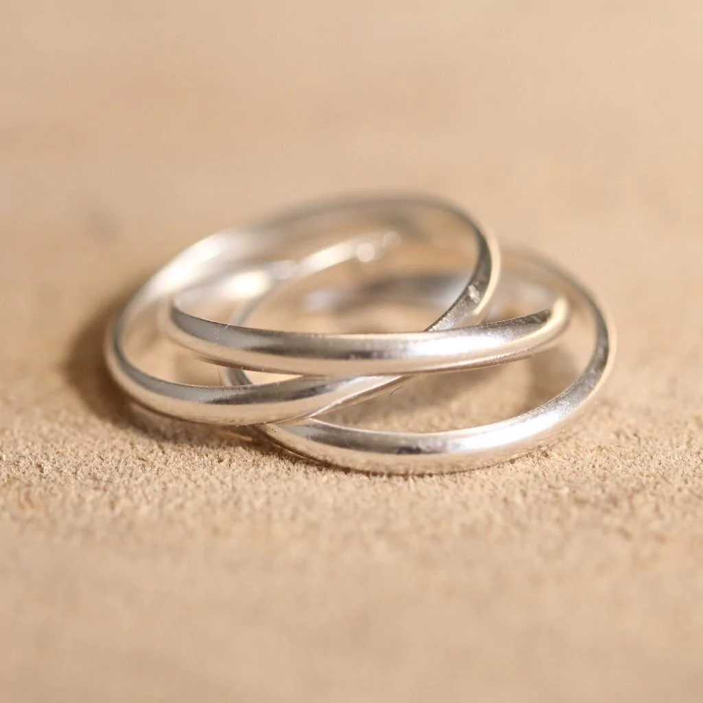 El anillo Triple esta realizado a mano en plata 925, compuesto por tres anillos finos que se entrelazan formando una sola pieza, es un modelo clasico, que representa la amistad.