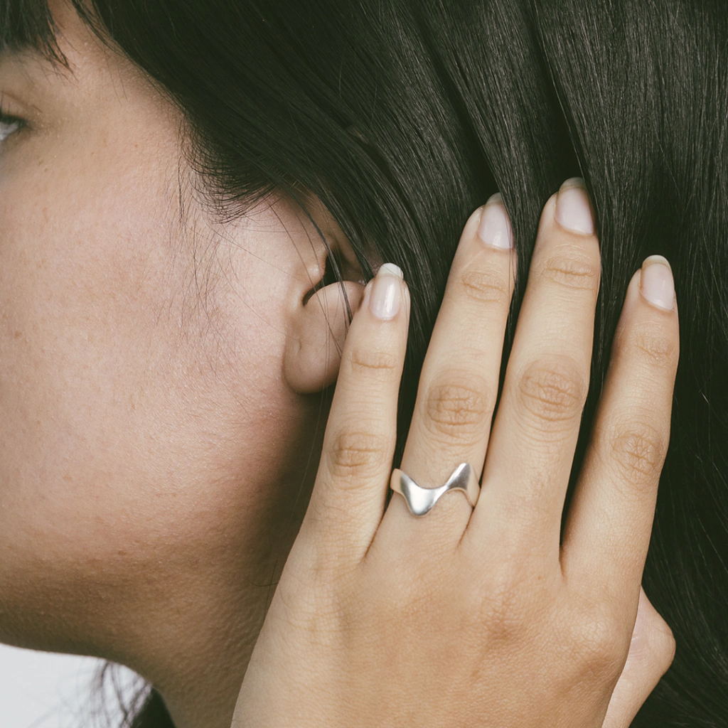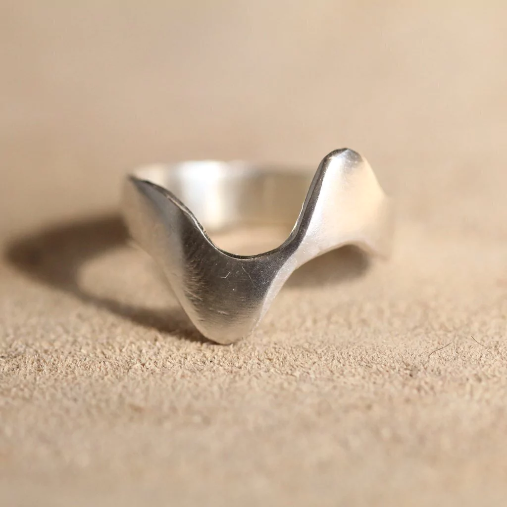 El anillo W esta realizado a mano en plata 925, es una anillo moderno, delicado y a la vez se destaca por su forma.