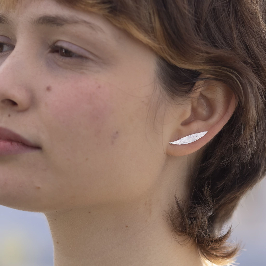 El aro trepador (1) hoja Maiten esta realizado a mano en plata 925, a partir de una hoja de maiten que nos trajimos luego de un viaje al Parque Nacional Los Alerces, en la Patagonia.