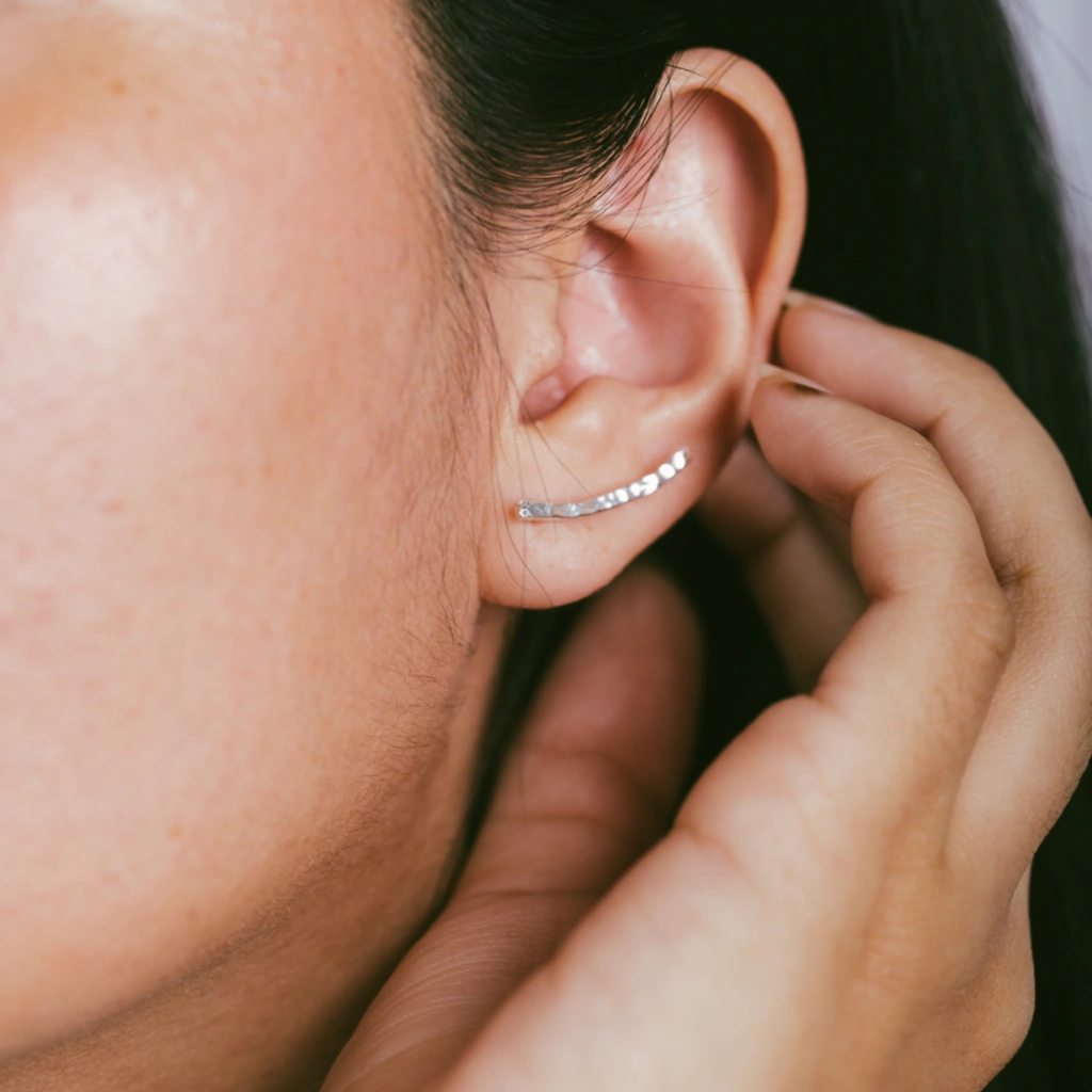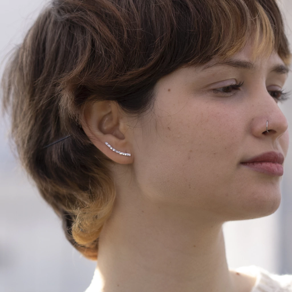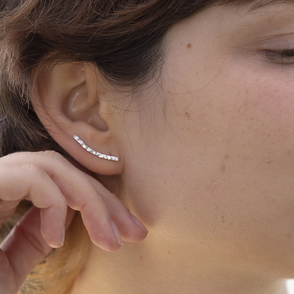 El aro trepador Lena esta realizado a mano en plata 925.
