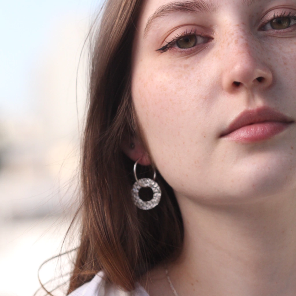 Los aros colgantes Donatella con argollitas estan realizados a mano en plata 925.