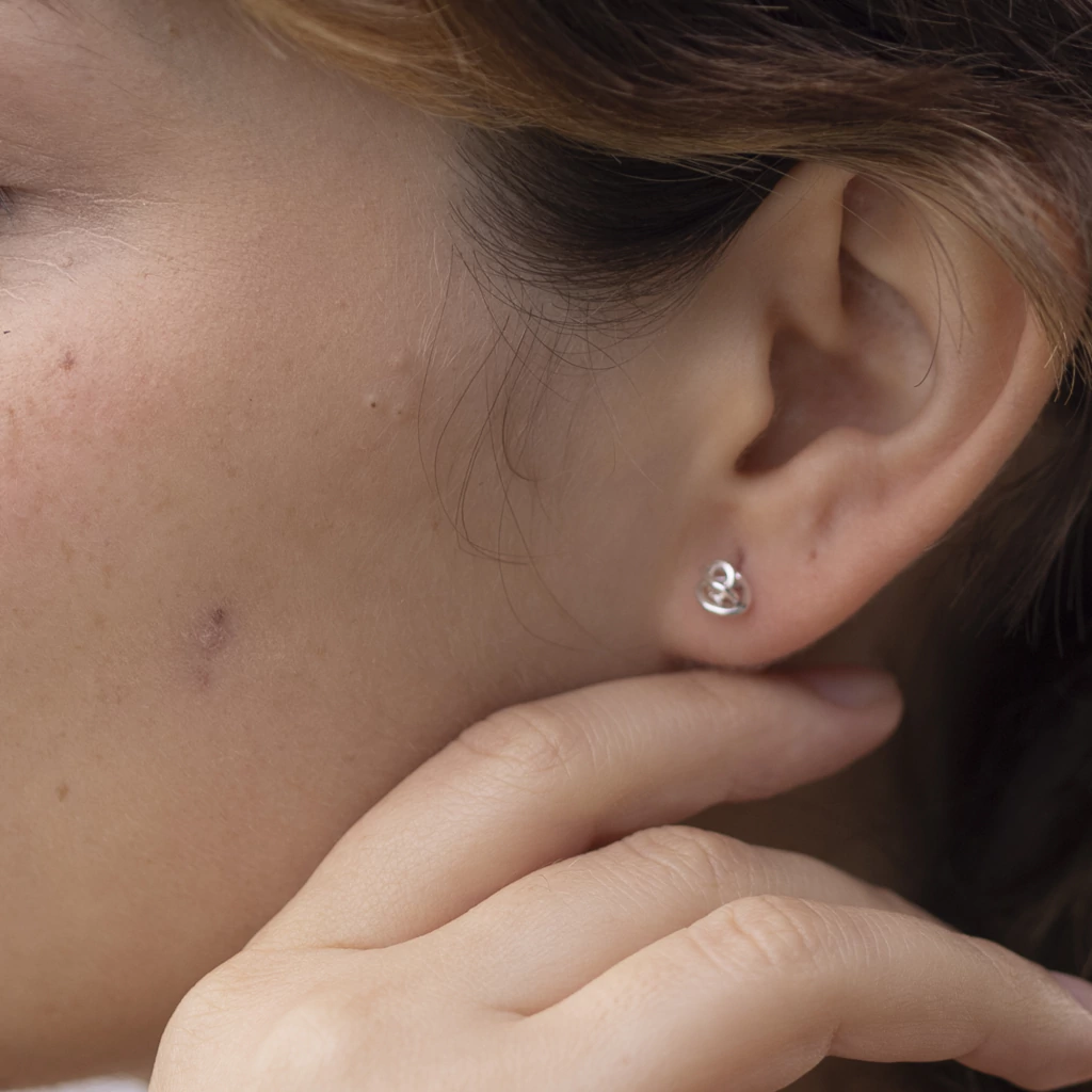 Los aros Tini Nuditos estan realizados a mano en plata 925, son aros pequeños, son cómodos, quedan pegaditos a la oreja y su diseño es super original.