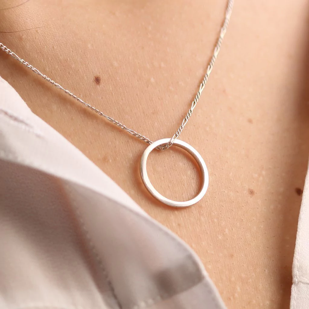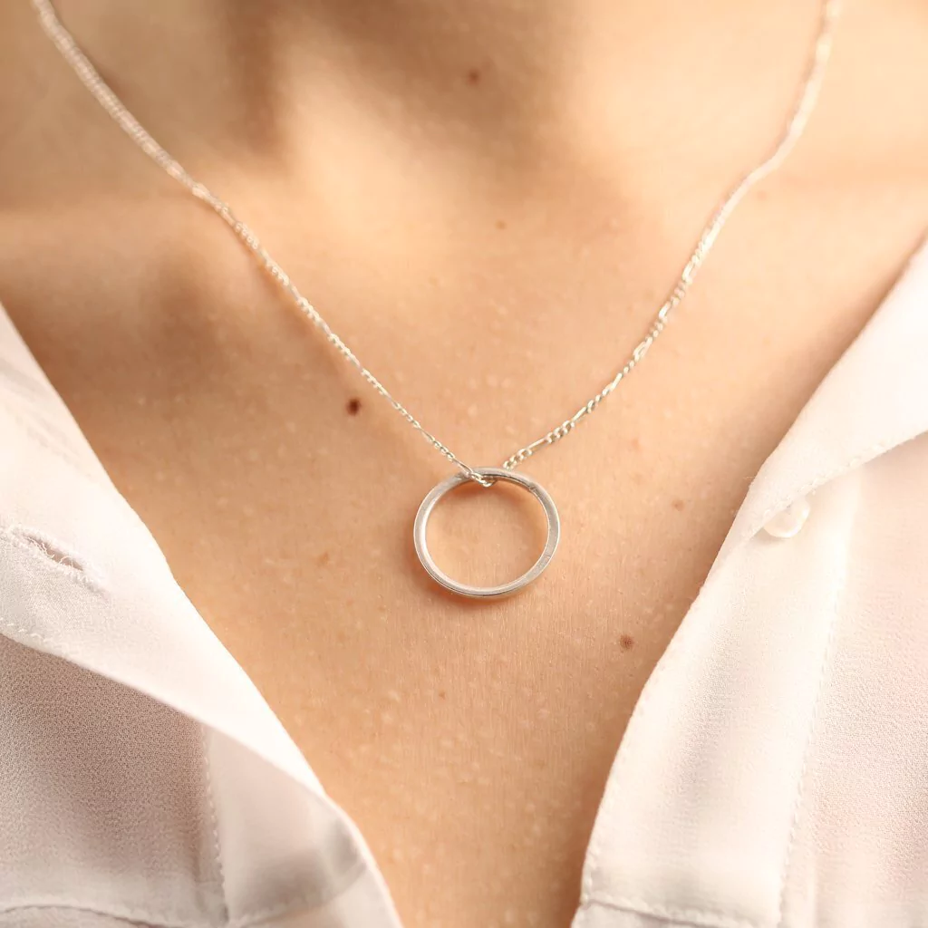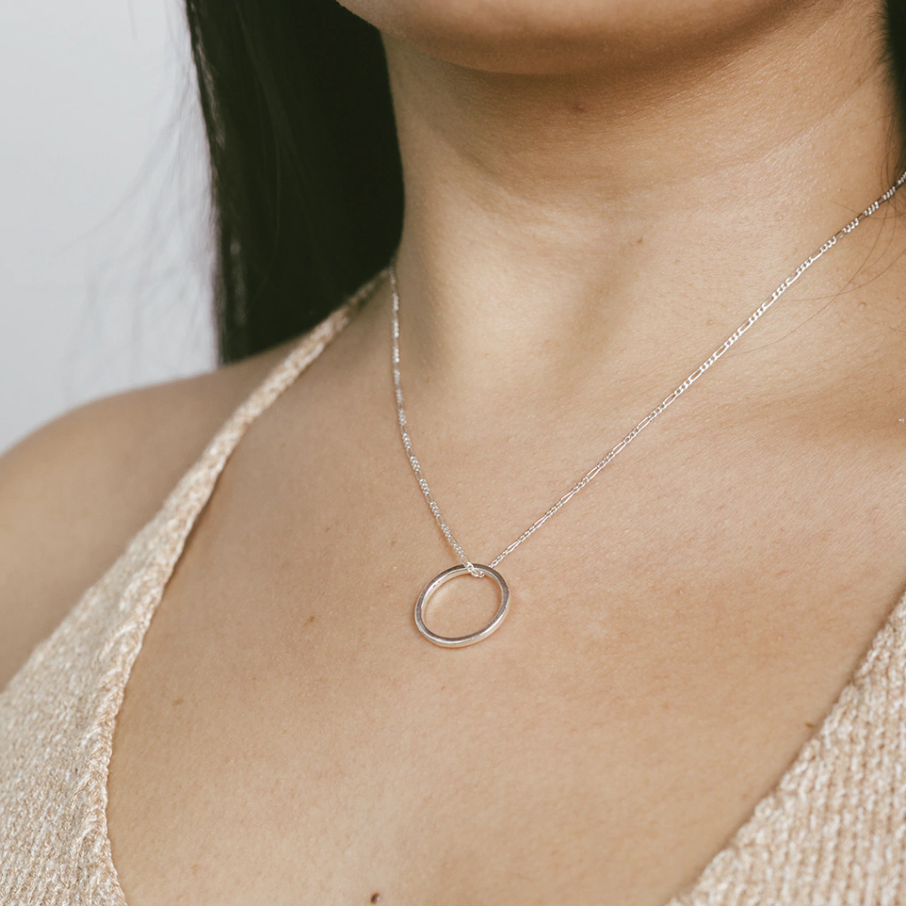 El collar Circa esta realizado a mano en plata 925, su diseño es minimalista, organico y moderno.