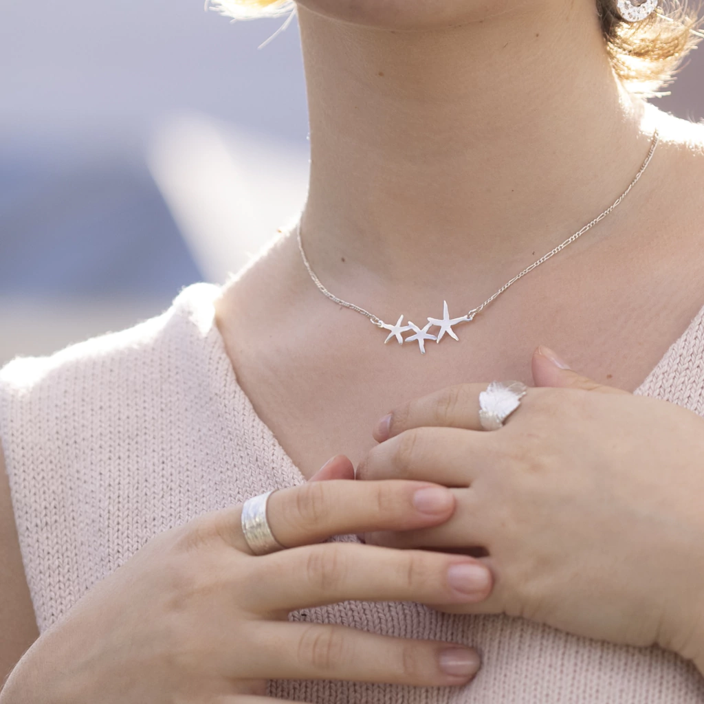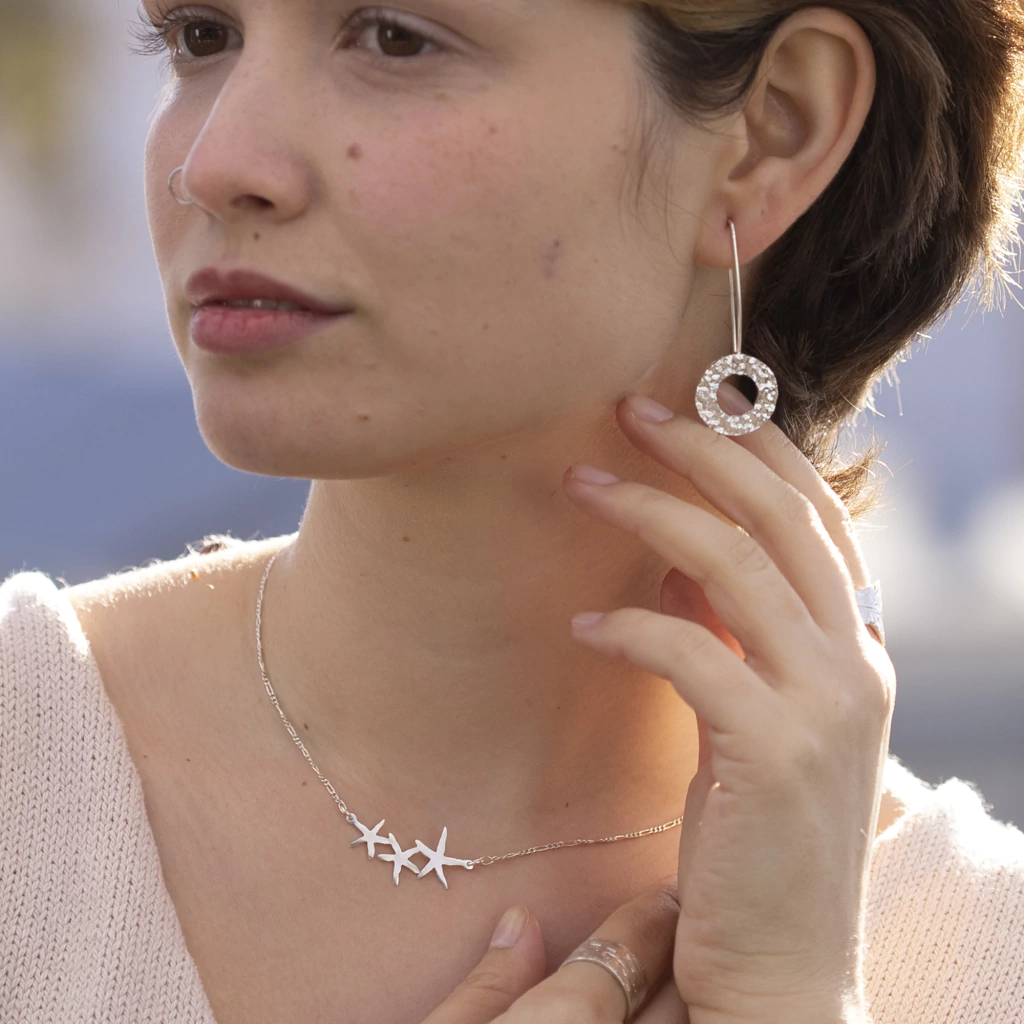 El collar Estrellas de mar esta realizado a mano en plata 925.