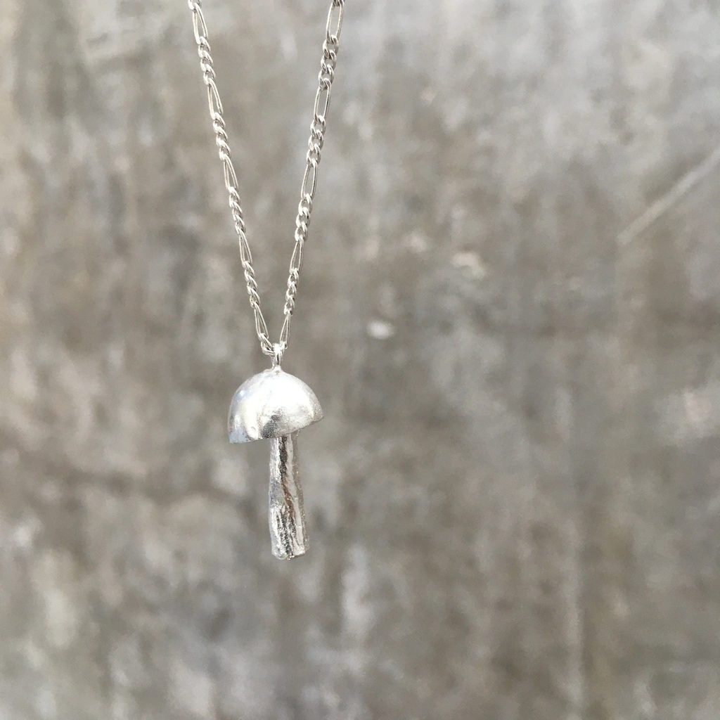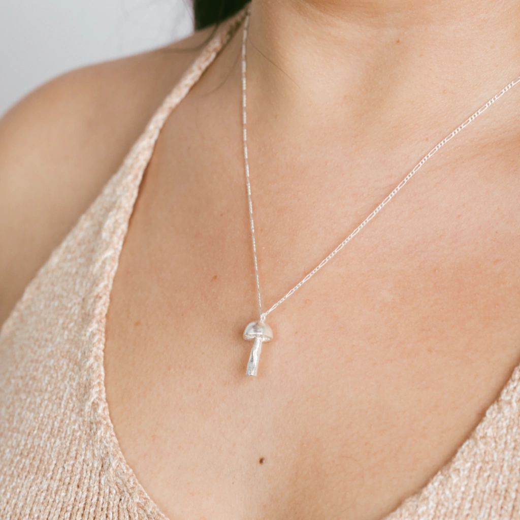 El collar Honguito esta realizado a mano en plata 925, el dije esta tallado, es super original y delicado.