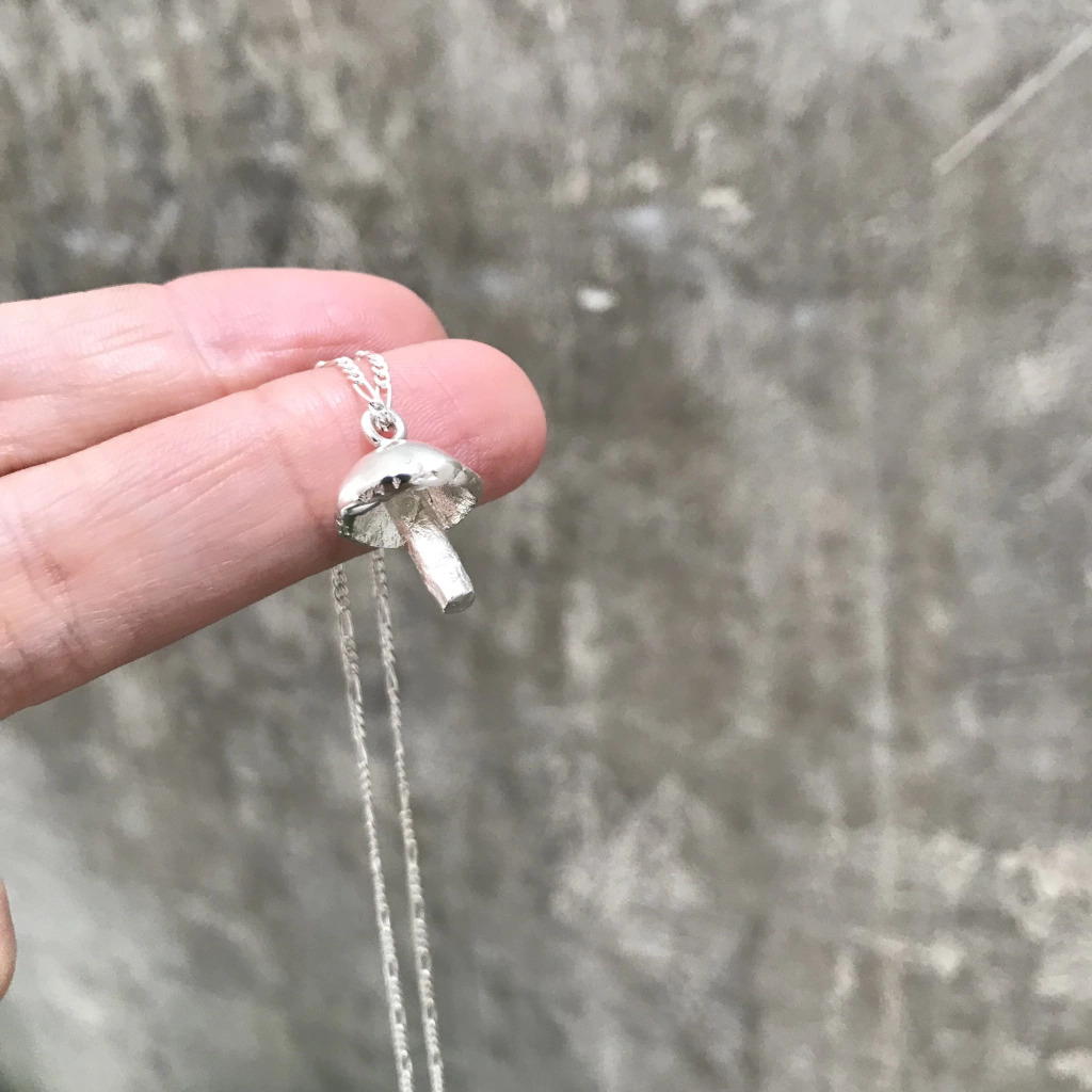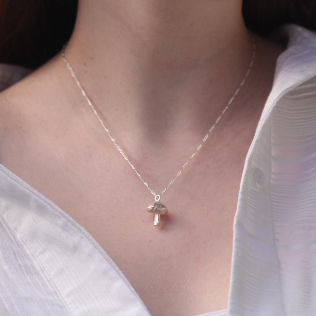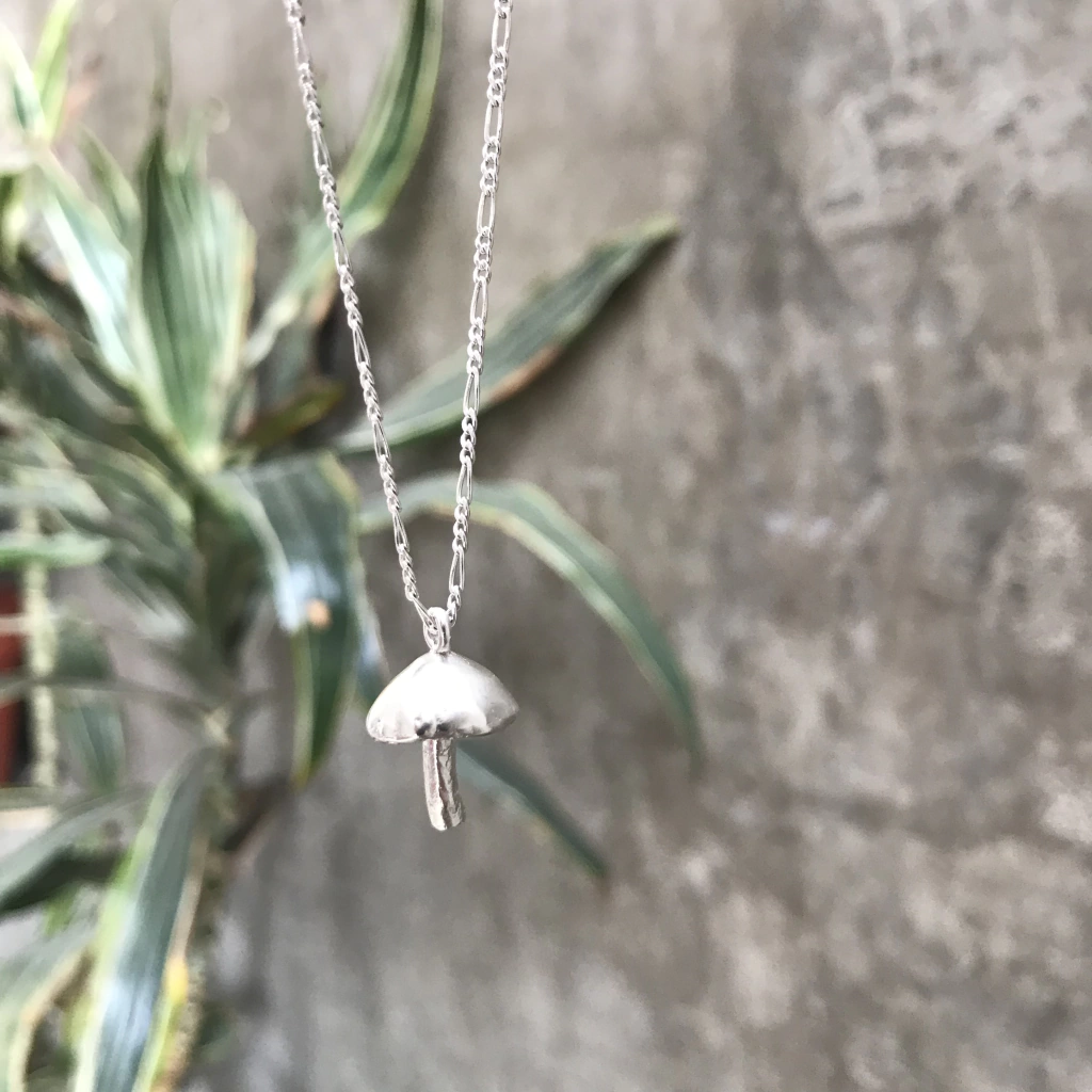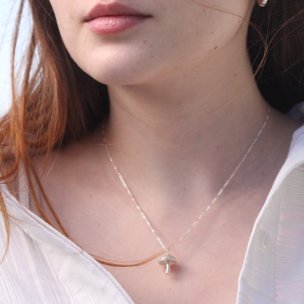 El collar Honguito Seta esta realizado a mano en plata 925, el dije esta tallado, es super original y delicado.
