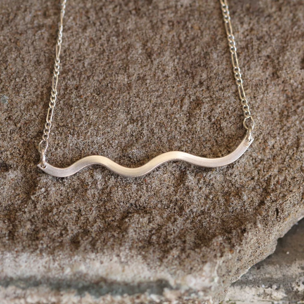 El collar Olas esta realizado a mano en plata 925, su diseño es sencillo pero profundamente expresivo, invita a flotar, a fluir, a habitar lo delicado.