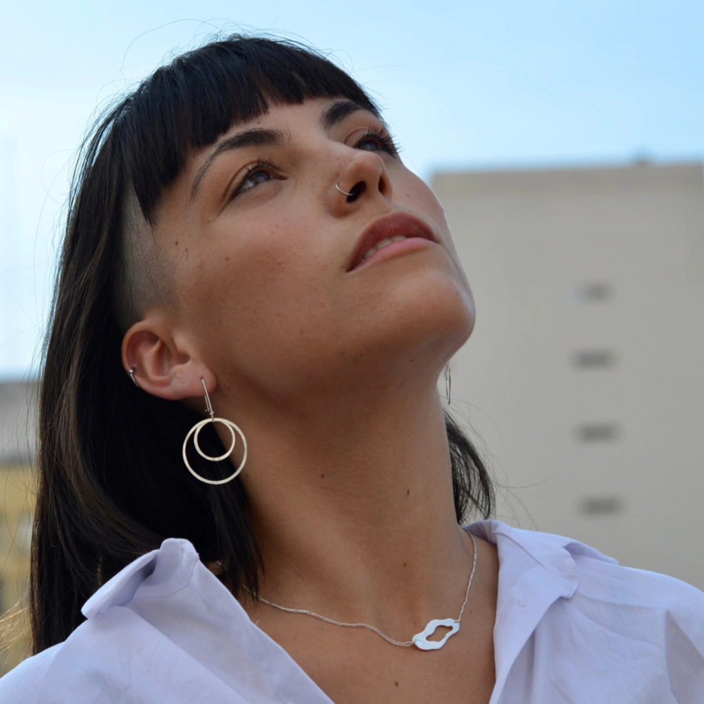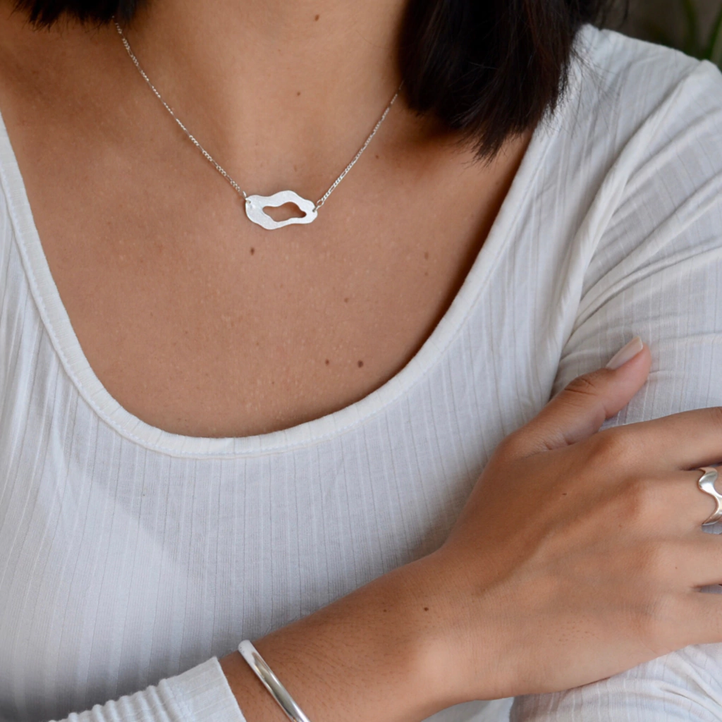 El collar Plastilina esta realizado a mano en plata 925, tiene una forma asimetrica, y organica.