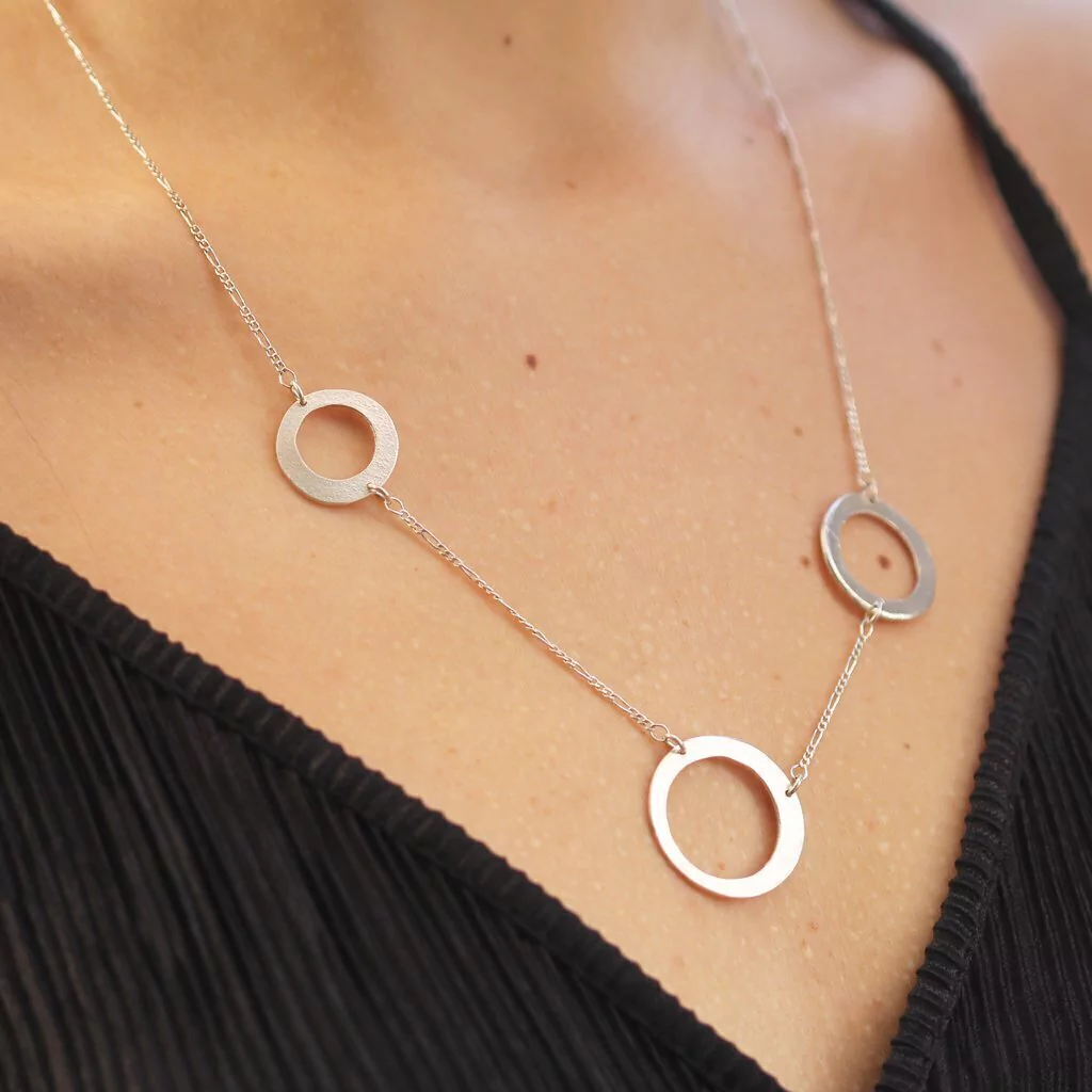 El collar Tres Circulos esta realizado a mano en plata 925.